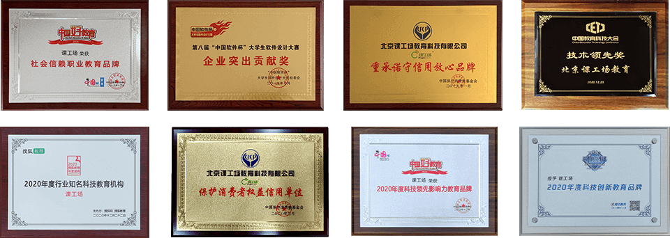 课工场从2015年至今连续多年数次获得腾讯、新浪、网易、小米等IT行业巨头认可的年度影响力教育品牌、用户信赖教育机构以及消协基金会授予的《2018年质量放心用户满意双优品牌》,行业的高度认可使得课工场产品的认证更加有底气!